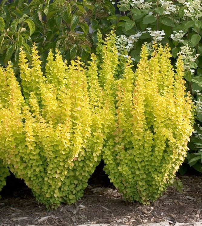 Барбарис Тунберга Мария медленнорастущий кустарник с прямостоячими побегами, вырастающий до 1,5 м. Крона колонновидная, широкая и очень плотная. Молодые побеги розово-оранжевые. Листья желто-золотые, часто с яркой карминово-розовой каймой, относительно крупные. Осенью кусты становятся оранжево-красные, очень эффектные