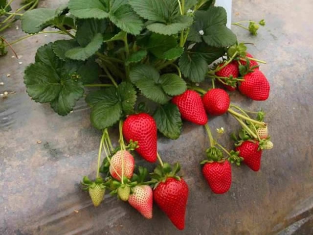 Клубника Петалума формирует среднерослый, компактный, многорожковый куст.