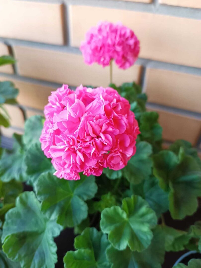 Оденсио Симфония зональная прямостоячая пеларгония. Куст компактный, цветки густомахровые ярко-розовые, среднего размера, собранные в плотные соцветия.