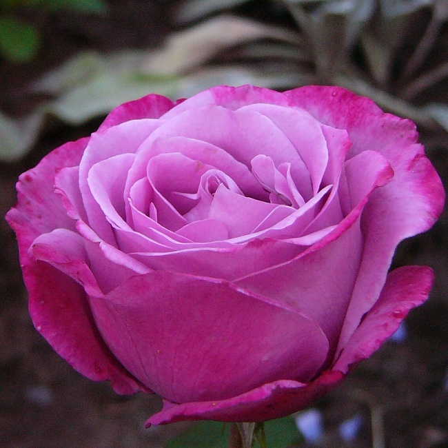 роза Блю Ривер — растение прямостоячее, высотой до 100 см, в ширину до 75 см. Цветки густомахровые, диаметром до 11 см, с закрытой серединкой. Растут по одному или собраны в кисти по 2 — 5 бутонов. Имеют бледно-лавандовый окрас с переходом в маджентовый по краю лепестков. При распускании приобретают легкий серебристо-голубой оттенок. Нераскрывшийся бутон темно-малиновый. Форма роз изменяется в процессе цветения от конического бутона до шаровидной.