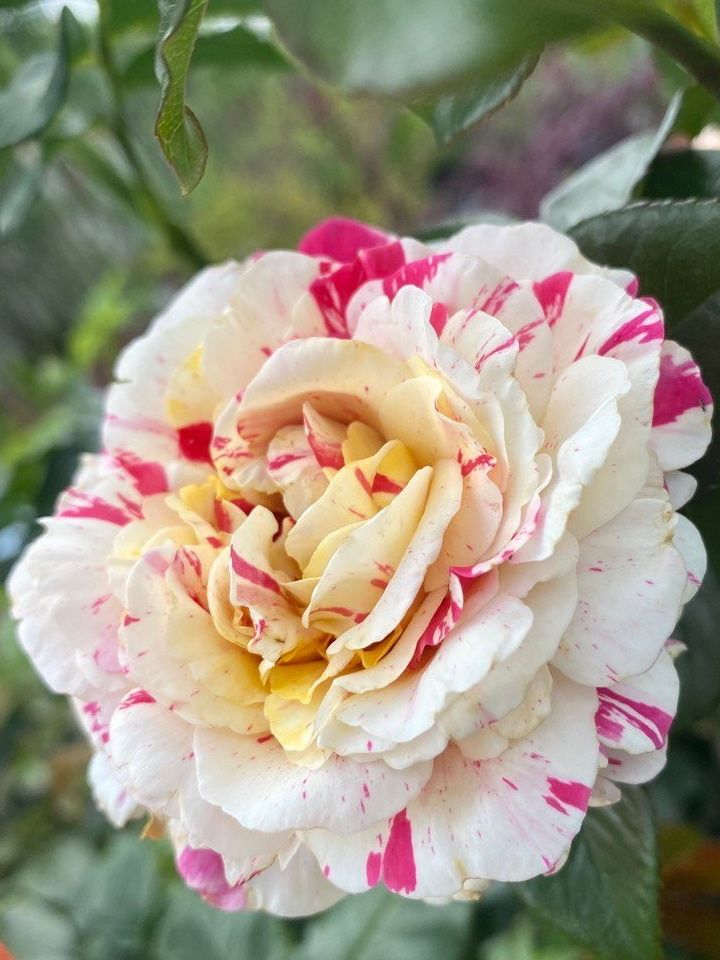 роза Ванила Фрайз высокорослый кустарник, ветвистый, мощный. Высота-150-200 см;ширина-100 см .Цвет Красный с светло-желтыми полосками. Цветы густомахровые, крупные, чашевидной формы, диаметром 10-12 см. Аромат легкий, фруктовый. Устойчивость к морозам и болезням высокая, однако рекомендуется укрытие на зиму.